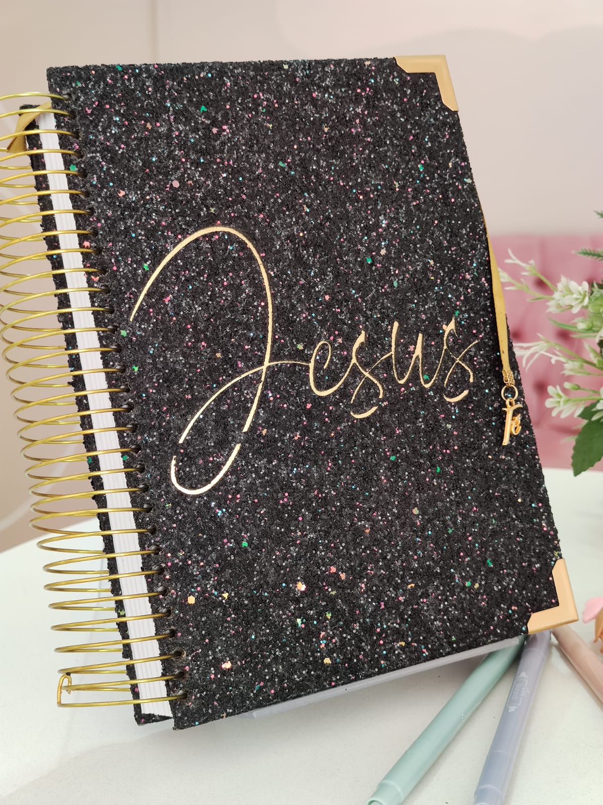 Bíblia anote NVI- JESUS com espaços para anotações no gliter e aspiral.