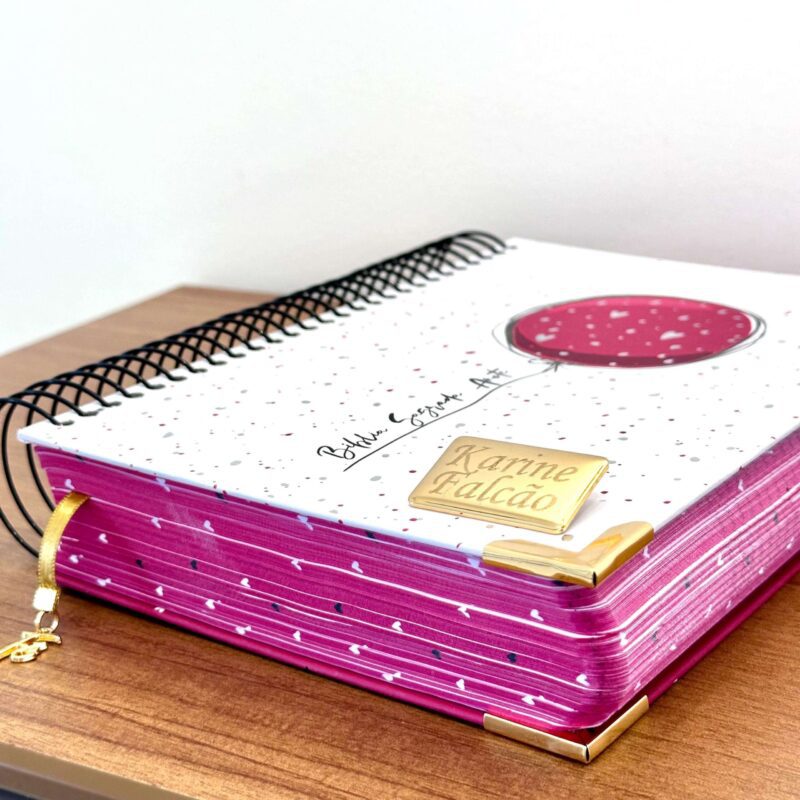 *Acompanha plaquinha personalizada, cantoneiras douradas e fita de cetim com pingente fé.