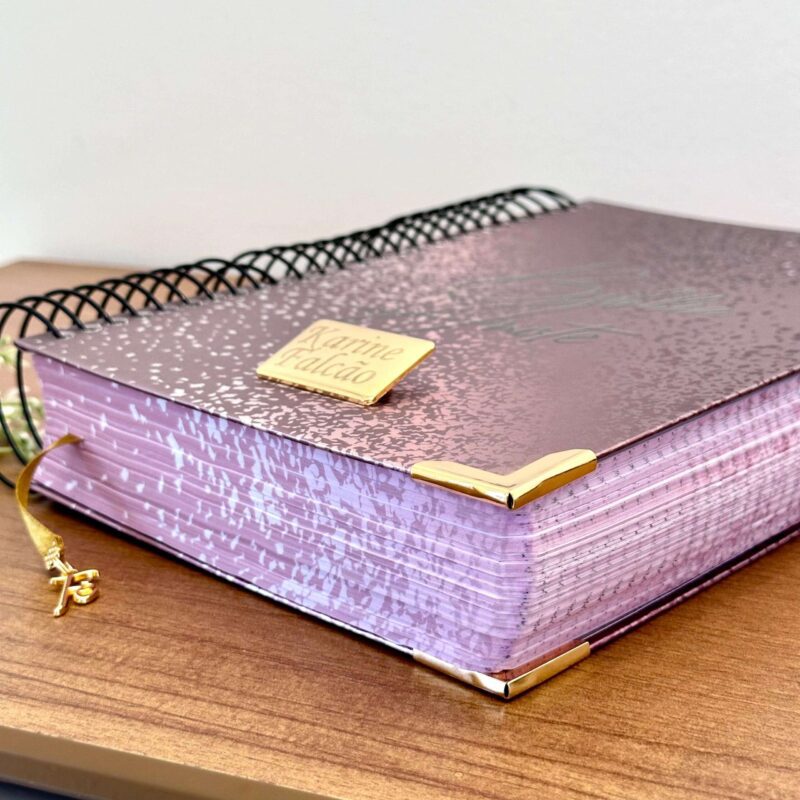 *Acompanha plaquinha personalizada, cantoneiras douradas e fita de cetim com pingente fé.