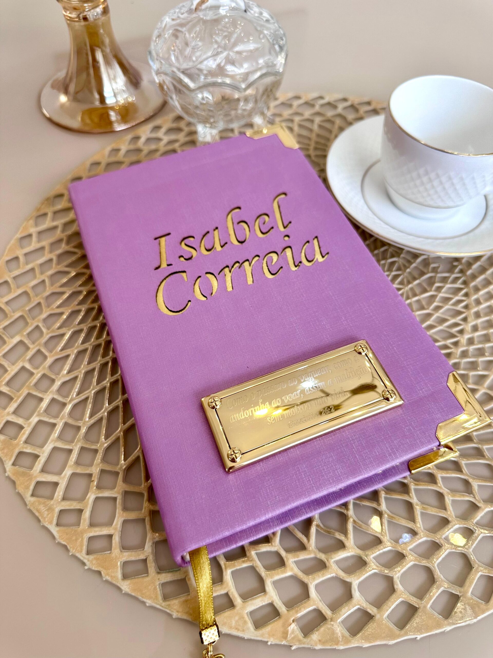 Bíblia com nome personlizado no tecido e aplicação de strass.