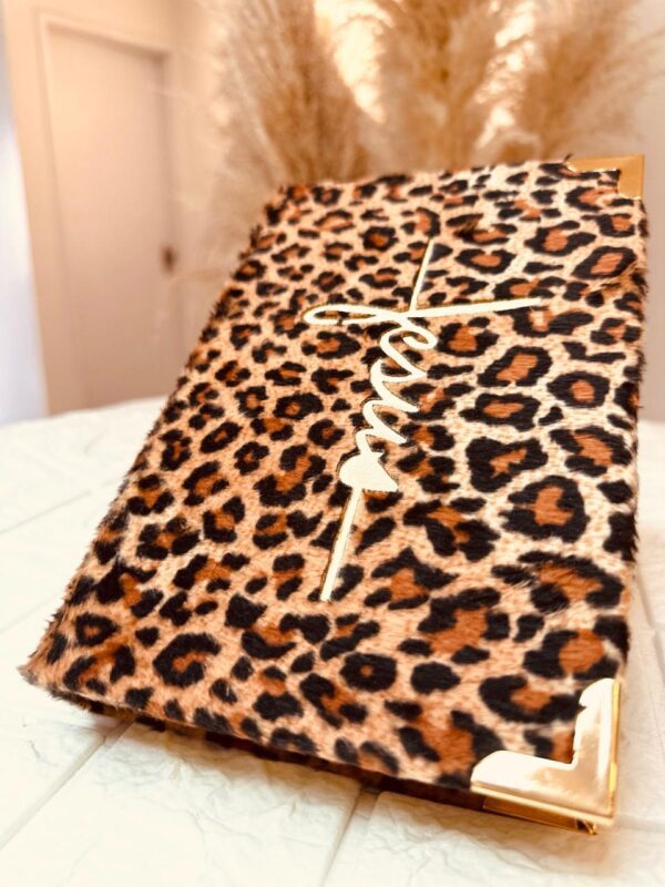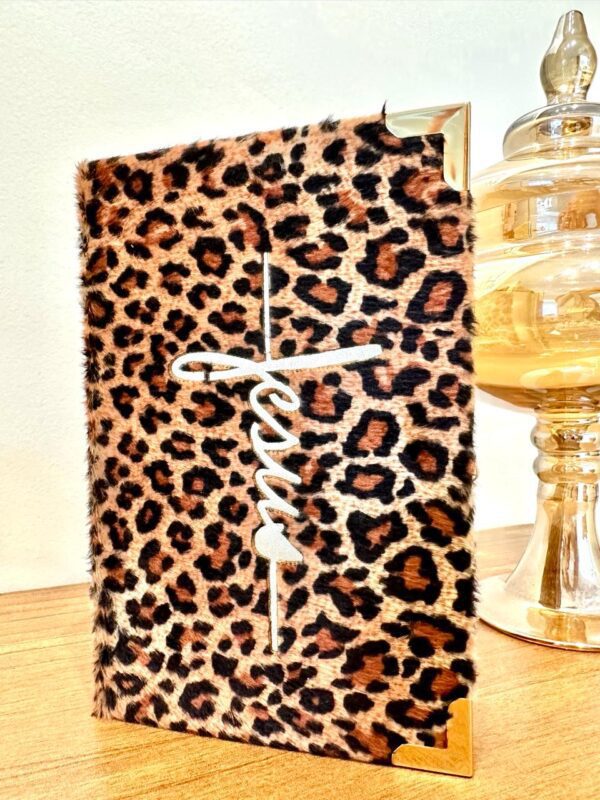 Bíblia Jesus cruz com estampa de pelúcia animal print.
