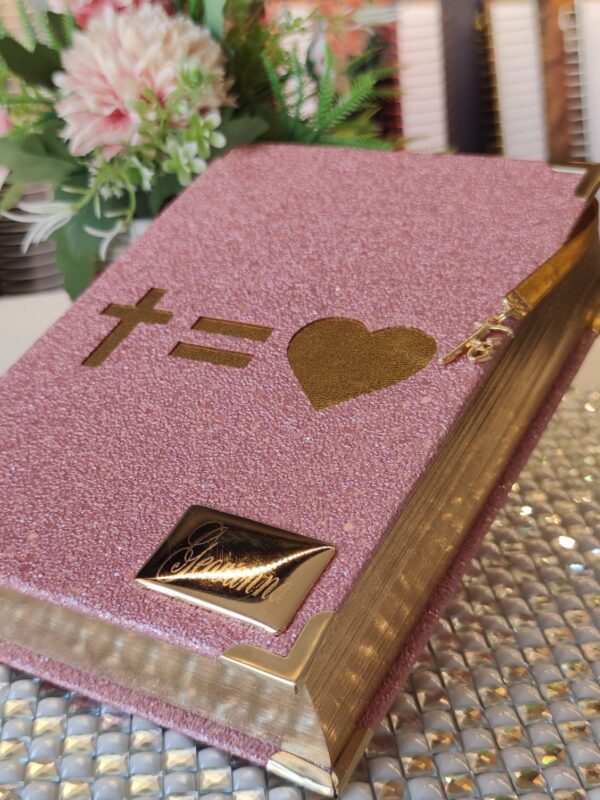 A Bíblia sagrada trás em sua capa o símbolo que representa o versículo de João 3:16, simples e com um toque de delicadeza