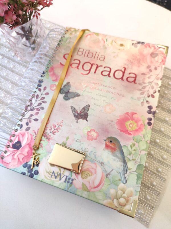 *Acompanha plaquinha personalizada, cantoneiras douradas e fita de cetim com pingente fé.