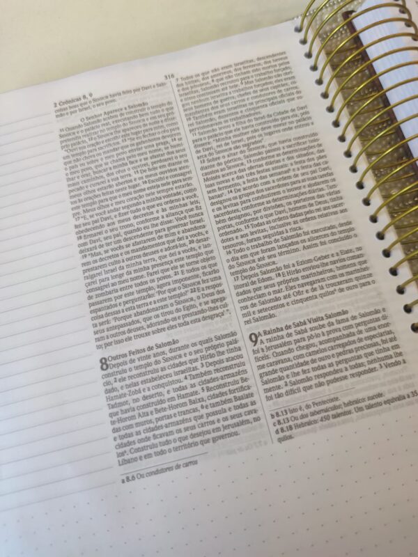 Já imaginou sentir-se como um escriba do passado, redigindo a Bíblia? Pois essa experiência é possível com a Bíblia Anote, um lançamento especial da GEOGRÁFICA EDITORA. Editada com requinte, a Bíblia Anote tem como diferencial os espaços laterais destinados ao leitor. Ali, ele pode registrar suas anotações, pequenos estudos e inspirações a partir da leitura do texto sagrado, tanto na meditação pessoal como através de pregações e mensagens bíblicas. O texto adotado é a Nova Versão Internacional (NVI), uma tradução contemporânea das Escrituras que preserva a necessária fidedignidade aos originais sem abrir mão da elegância de estilo e da necessária atualização de formas verbais, unidades de medida e pequenos detalhes – assim, o entendimento é facilitado e pequenos detalhes são melhor percebidos. Com a Bíblia Anote, tudo aquilo que Deus falar ao seu coração pode ser anotado no mesmo instante da leitura, formando um arquivo de experiências espirituais que estará à disposição para sempre.