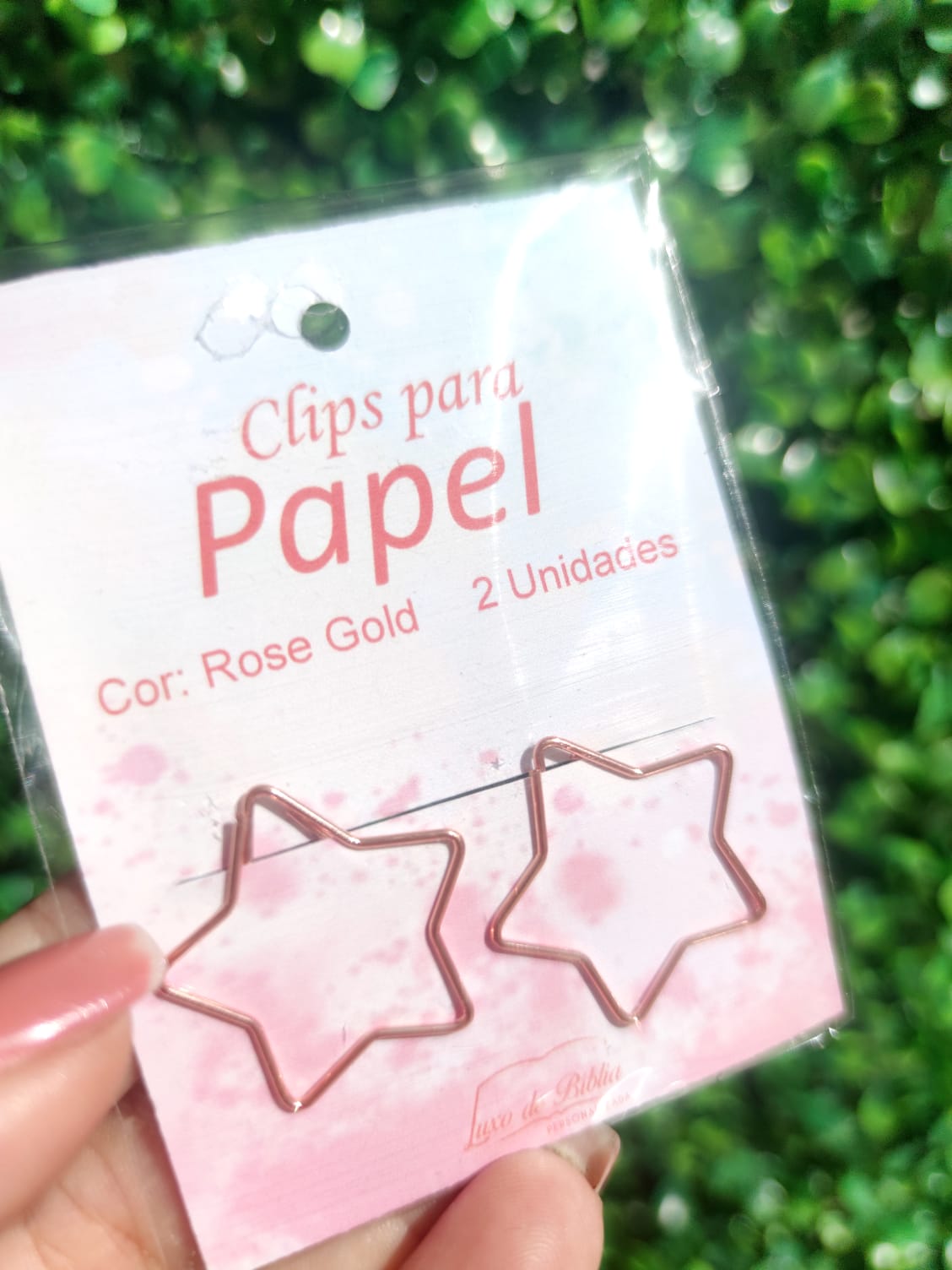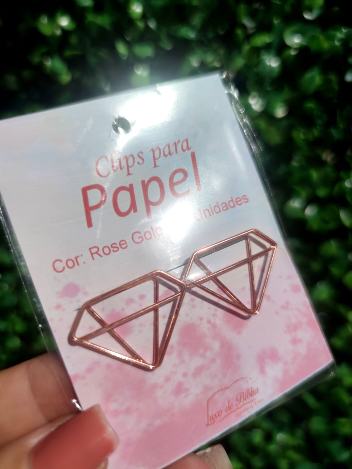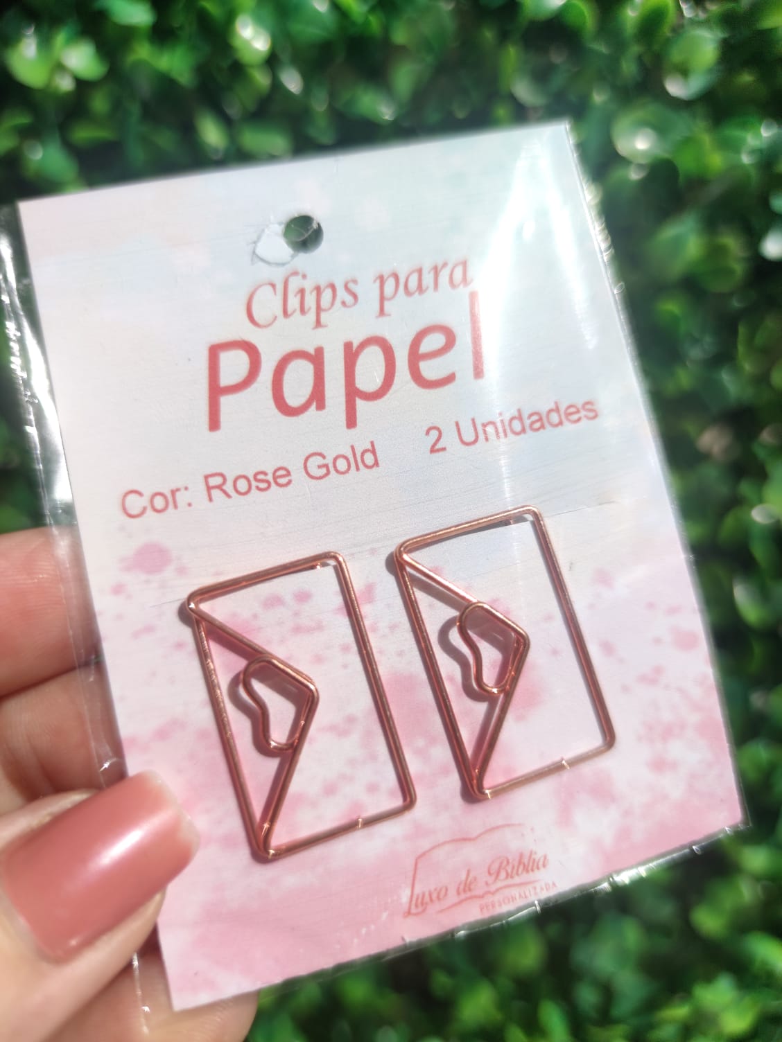 Clipes de metal rose gold.