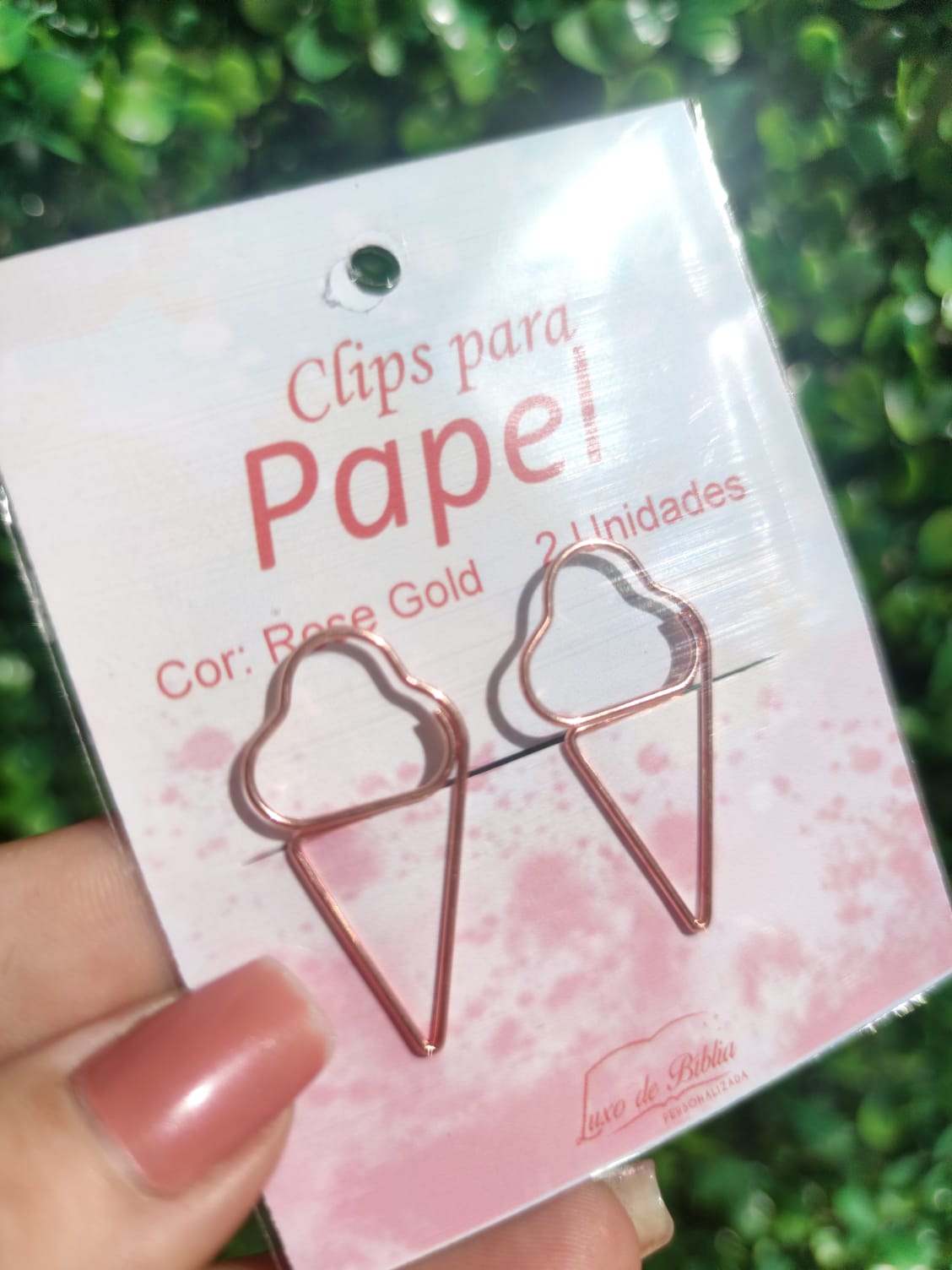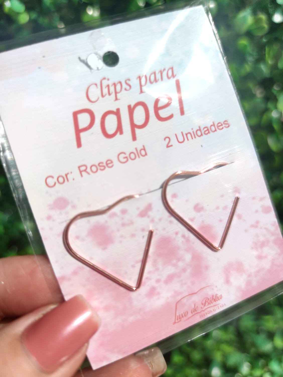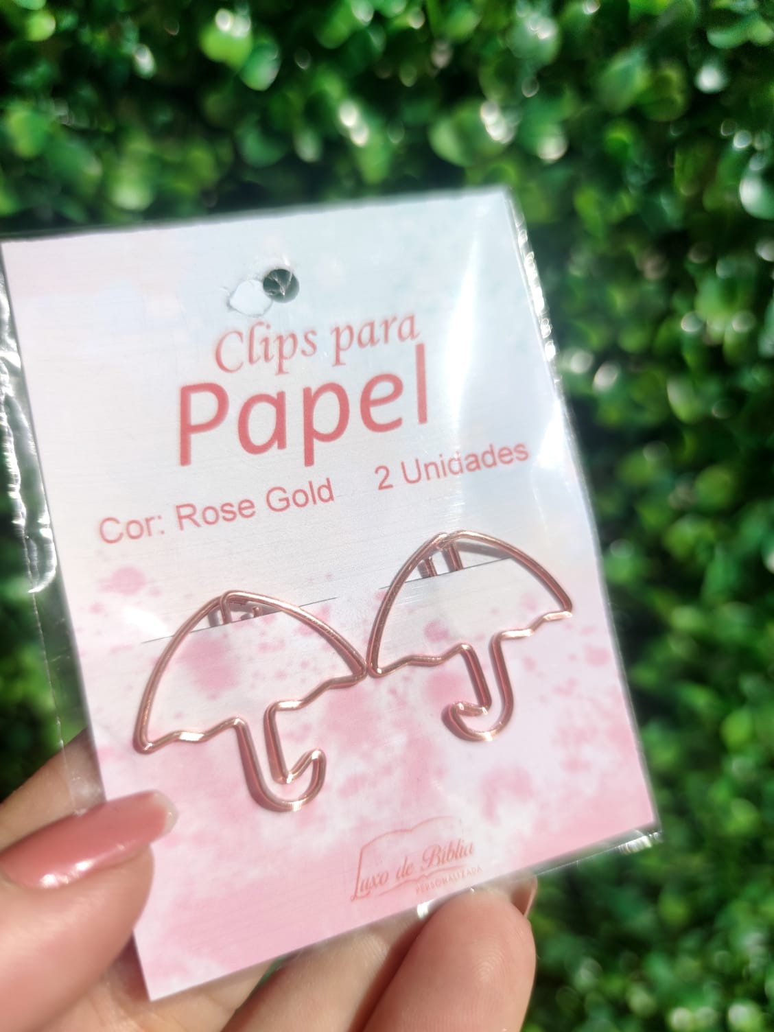 Clipes de metal rose gold.